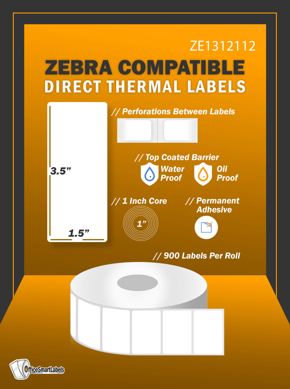 Amazon.com : 3.5" x 1.5" [ OfficeSmartLabels ] ZE1312112 Direct Thermal Labels, Compatible with ...